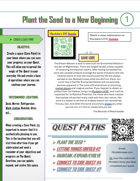 Order M-EYE Quest as it walks your through character creation. Use our sigils to align your daily actions with your destiny. Order the card game, or play for free by downloading the sigils.